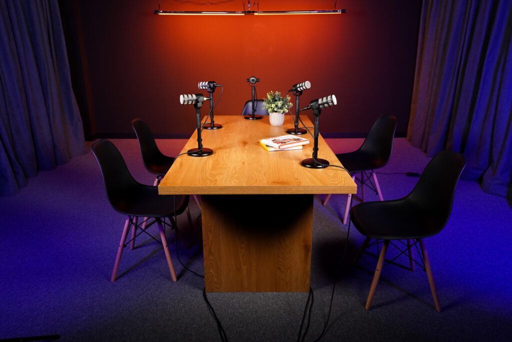 Ofrecemos un estudio tratado acústicamente para grabar audio profesional, equipado con todo lo necesario para ser un plató y acompañado de profesionales que harán que tener tu propio podcast sea muy fácil. Grabamos podcast en video en hasta 4K y perfil S-Log3 con opciones de una sola cámara, multicámara o incluso en streaming si lo prefieres.